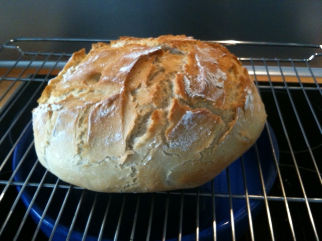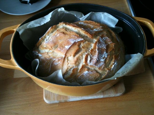 La poser dans la cocotte tapissée de papier de cuisson, la grigner, la mouiller avec les mains ou un vaporisateur et mettre un peu de farine pour faire joli à la fin. Fermer la cocotte avec son couvercle.